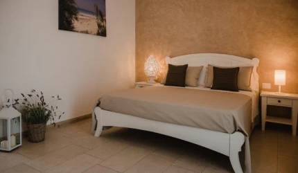 La camera si affaccia sul porticato con uno spazio di pertinenza attrezzato con tavolo e sedie vista vigneto e su un'ampia corte arredata di divani per rilassarsi, bere un buon bicchiere di vino o leggere un libro. Il soggiorno include una ricca colazione a buffet nella sala colazioni ubicata nella corte.